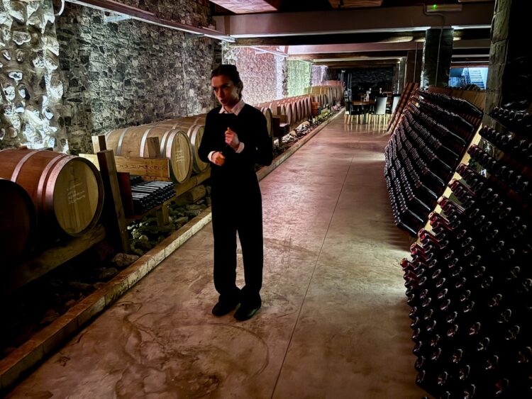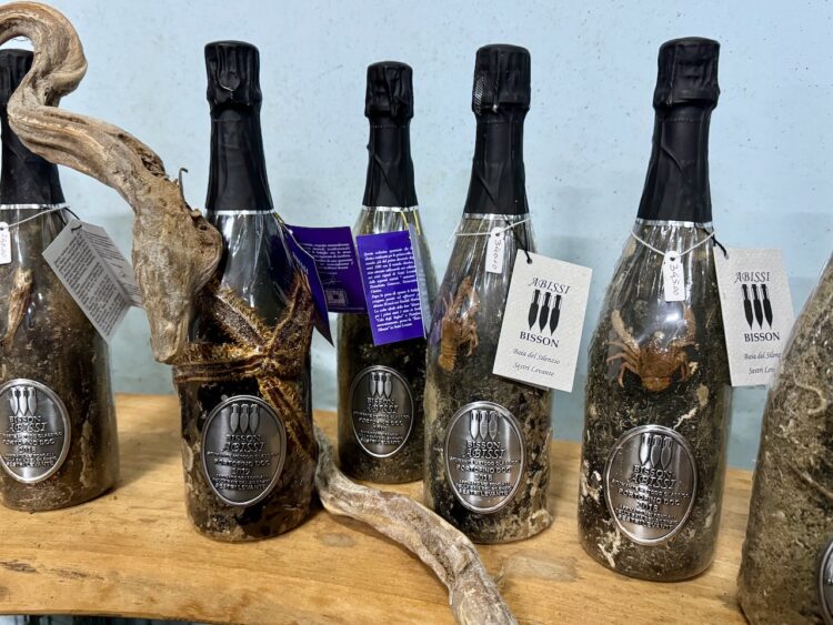 Unlike during our spring stay in Florence, when we almost always had a tour or lecture in the afternoons after class, we made a conscious decision to devote most of our afternoons in Sestri Levante to homework and studying. But one evening during our second week, I made an exception and (after finishing my homework!) joined an evening “field trip” led by one of the school’s teachers to the Bisson Winery in nearby Riva Trigoso. Our tour of the winery included learning about how they age their spumonte underwater in the ocean in large metal cages, leaving on the bottles the sand and sea creatures that make their homes there. (The larger and more impressive the animal, the more the bottle sells for–sometimes upwards of €300–even though the wine inside is exactly the same.) We then got to taste two of their wines, accompanied by some antipasti, before walking back to the train station at dusk. (Click on the thumbnails below for the full-size version and caption.)